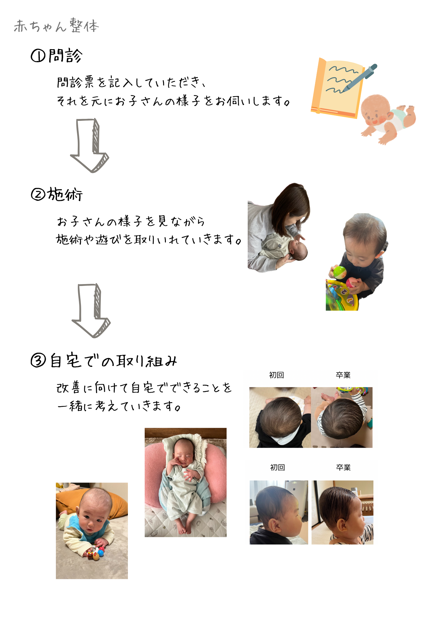 赤ちゃんのこと、不安になってはじめてどうしようと思うことが多い。頭の歪みや発達の相談をしてくれたママは「もう少し早く対処してあげたらよかった」と後悔の気持ちを話してくれました。ママが正しい知識を知れること、ママ自身が我が子をケアしてあげられることが何より大切だと感じ、気軽にお伝えできる場として開催します。